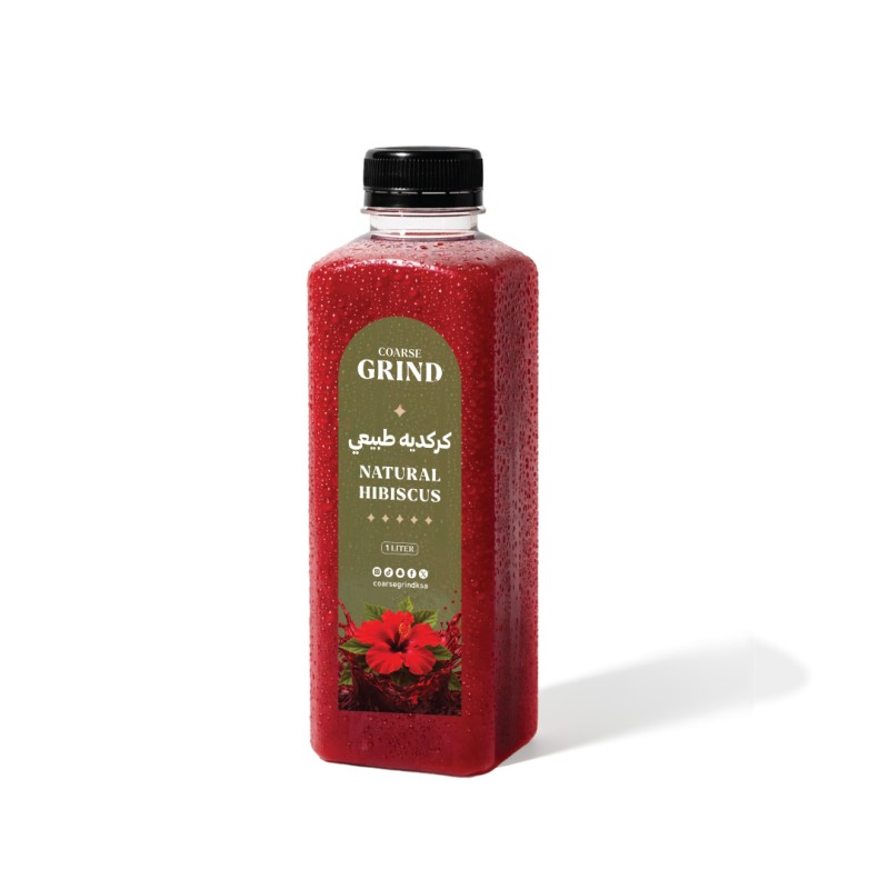 مشروب كركديه بارد ومنعش بطعم غني ولون جذاب — مُحضّر بعناية في زجاجة لتر مثالي للمشاركة وأجواء رمضان.