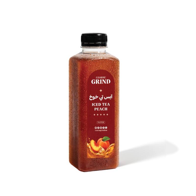 شاي مثلج بنكهة الخوخ المنعشة وطعم متوازن — مُحضّر بعناية في زجاجة لتر مثالية للمشاركة وأجواء رمضان.